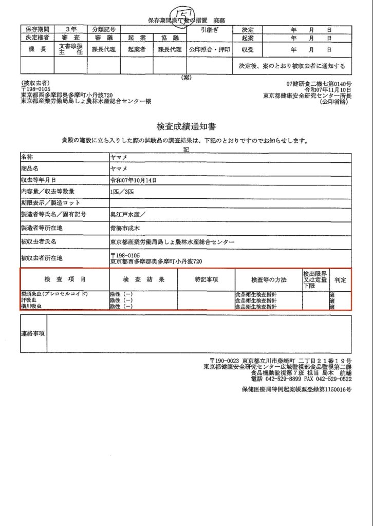 「水質の悪化は魚の味は勿論ですが寄生虫対策上も絶対にダメ」